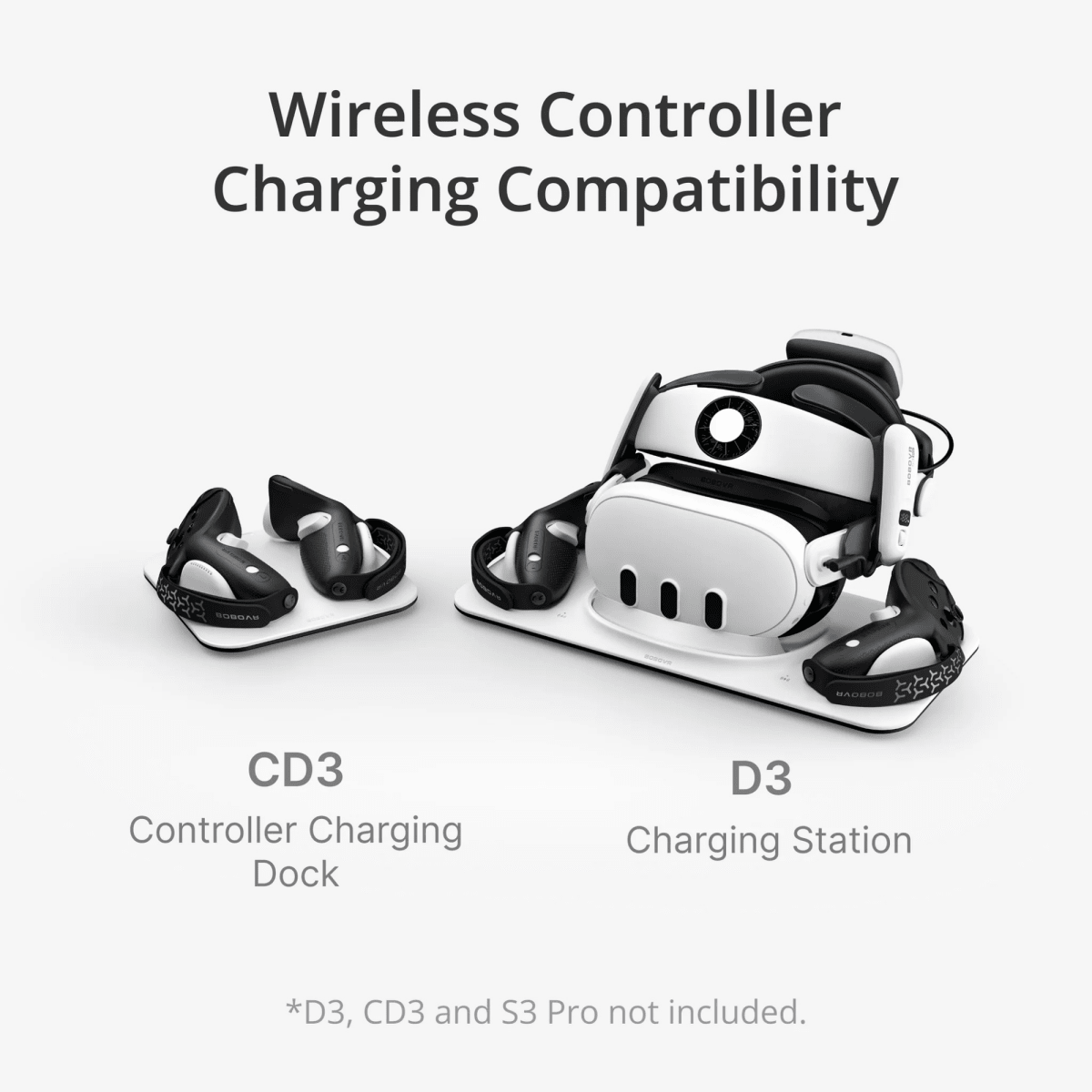 Belaidis įkrovimas: Suderinamas su BOBOVR D3 įkrovikliu, todėl galima įkrauti nenuimant dangtelių.