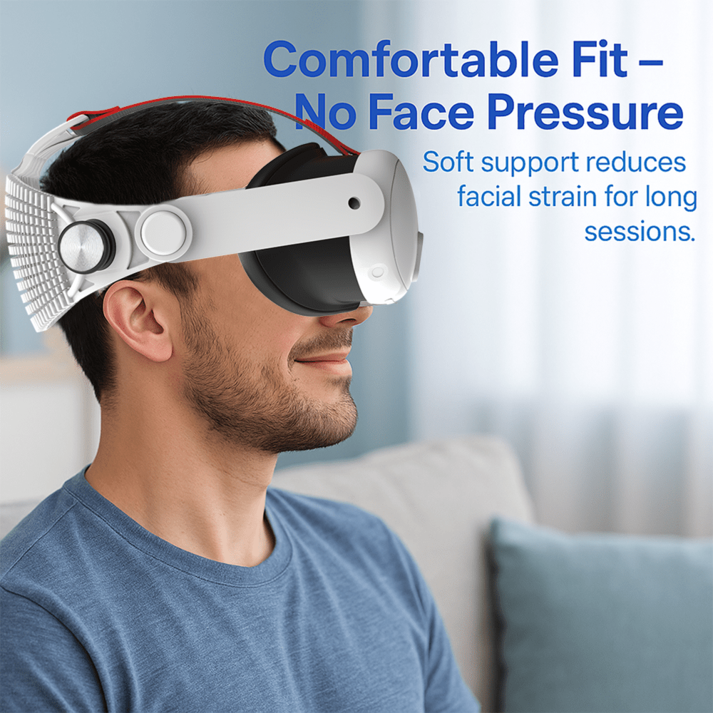 Ši galvos juosta, skirta Meta Quest 3 / Quest 3S, yra puikus patobulinimas vartotojams, ieškantiems didesnio komforto ir geresnio stabilumo. Idealiai tinka ilgoms žaidimų sesijoms, VR treniruotėms, filmų žiūrėjimui ar profesionaliam VR naudojimui.